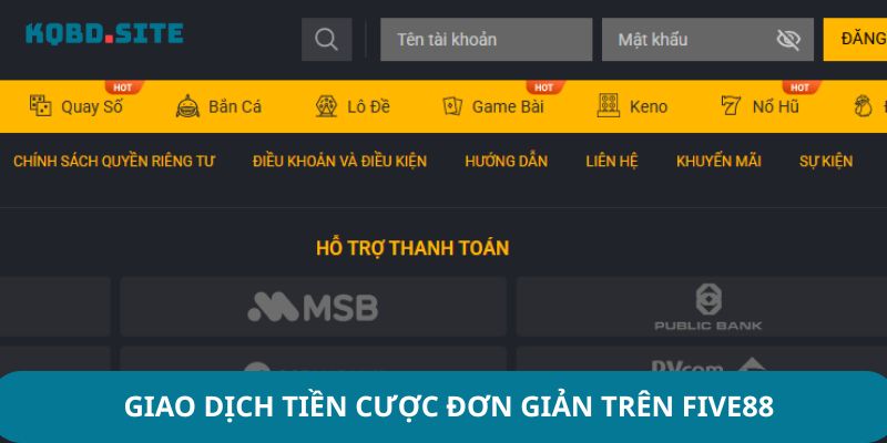 Five88 cam kết mang lại trải nghiệm giao dịch thuận tiện và nhanh chóng tối đa. Dưới đây là hướng dẫn chi tiết từng bước để bạn nạp vốn và rút thưởng thành công.