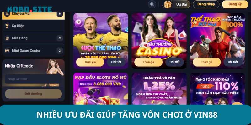 Để nâng tầm trải nghiệm cá cược và gia tăng vốn cho người chơi, VIN88 thường xuyên triển khai các chương trình khuyến mãi đặc biệt và hấp dẫn nhất trên thị trường: